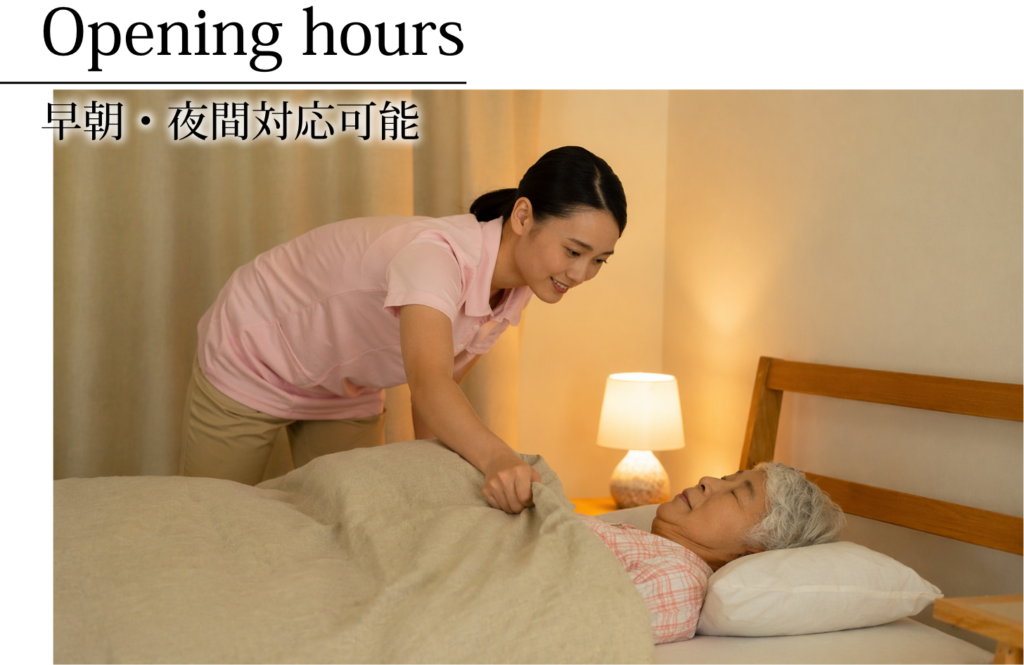 ご利用者様やご家族の生活スタイルに合わせて、早朝や夜間の訪問看護にも対応しております。