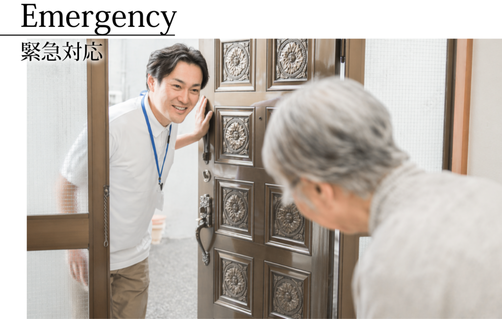 必要に応じて緊急訪問を行い、安心して過ごせるようしっかりサポートいたします。